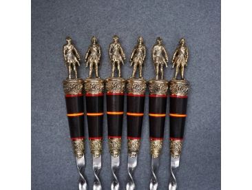 Рукоять - художественное литьё из латуни, дерево венге, вставки из вулканизированной фибры